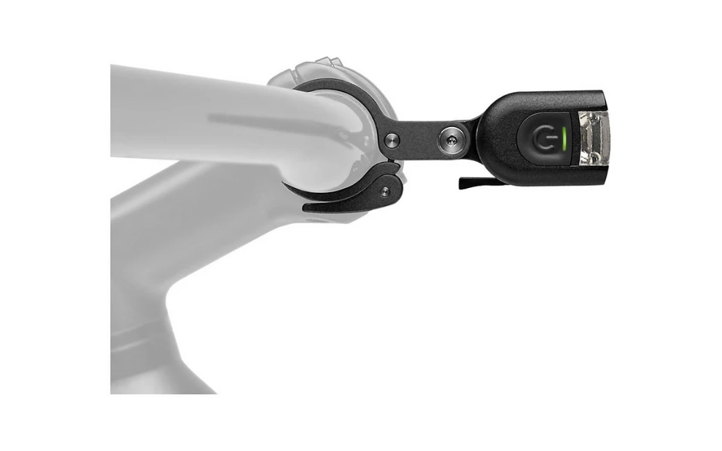 - Le support de fixation se fixe et s’enlève facilement et s’adapte sur les cintres de 22.2, 25.4 et 31.8 mm de diamètre pour pouvoir positionner l’éclairage au-dessus, en dessous ou devant la potence dans le but de s’intégrer parfaitement entre les câbles et le support GPS,