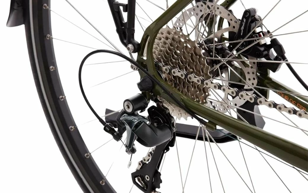 La liste des spécifications se lit comme la liste de souhaits d’un cyclotouriste ; allant même jusqu’à inclure un moyeu à dynamo Shimano ! Prêt pour l’expédition dès la sortie de la boîte – ajoutez simplement un pilote, des bagages et un fort sens de l’aventure.