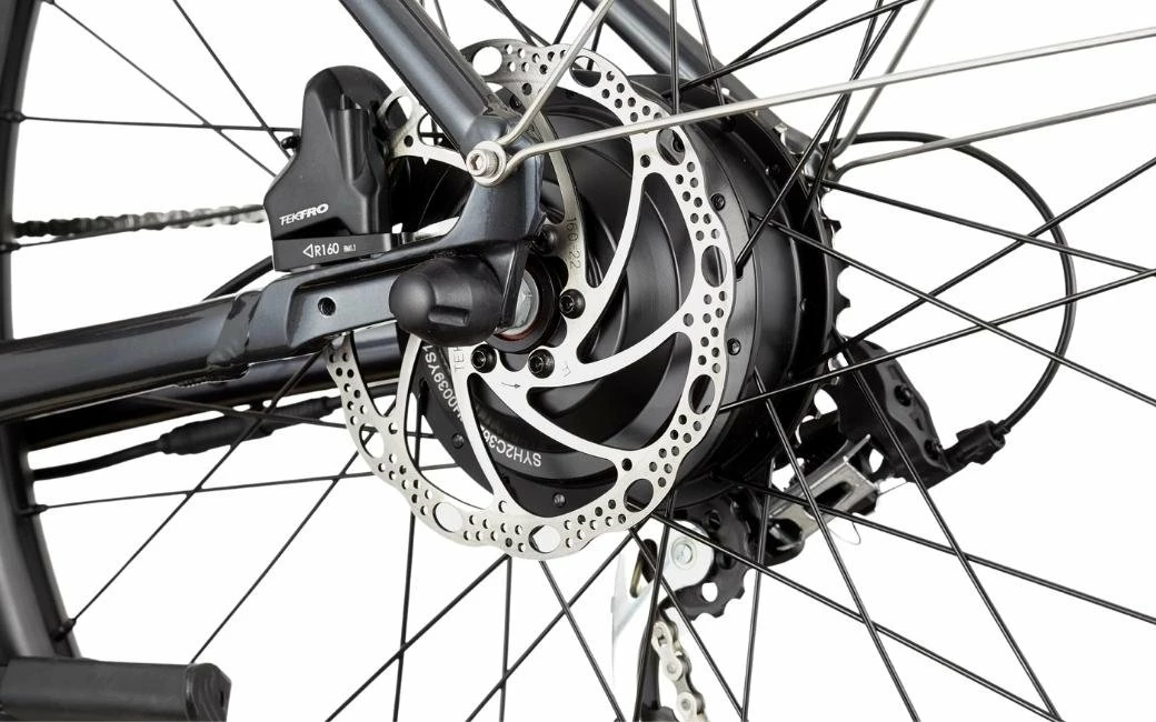 Le Treadwell Neo 2 et son cadre aluminium, son moteur 250W, ses équipements pour la ville, et ses freins à disque hydrauliques