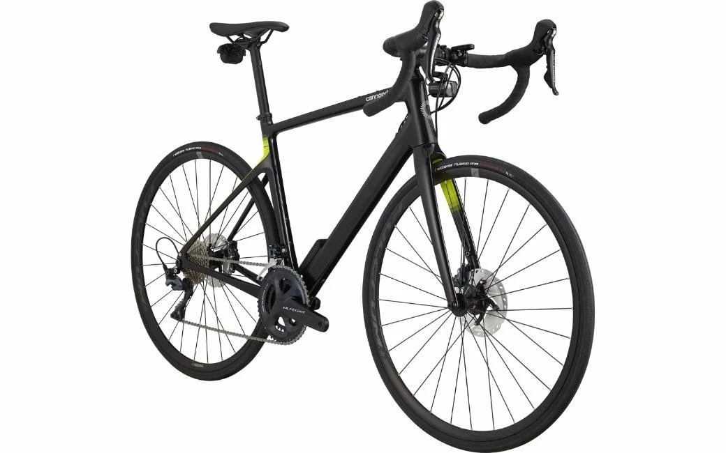 Le Synapse Carbon 2 RL avec son cadre carbone, une transmission Shimano, ses roues en 700 et ses freins à disque hydrauliques.