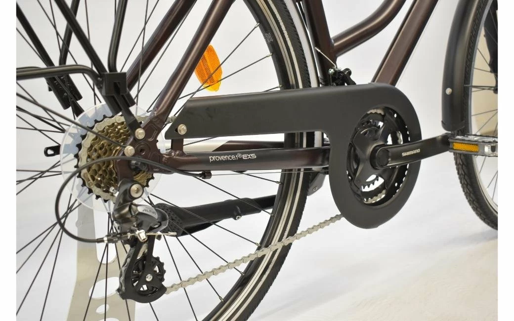 Le EXS Provence D1.0 et son cadre aluminium, une transmission Shimano 21 Vitesses, ses roues en 700″, et ses freins V-brake